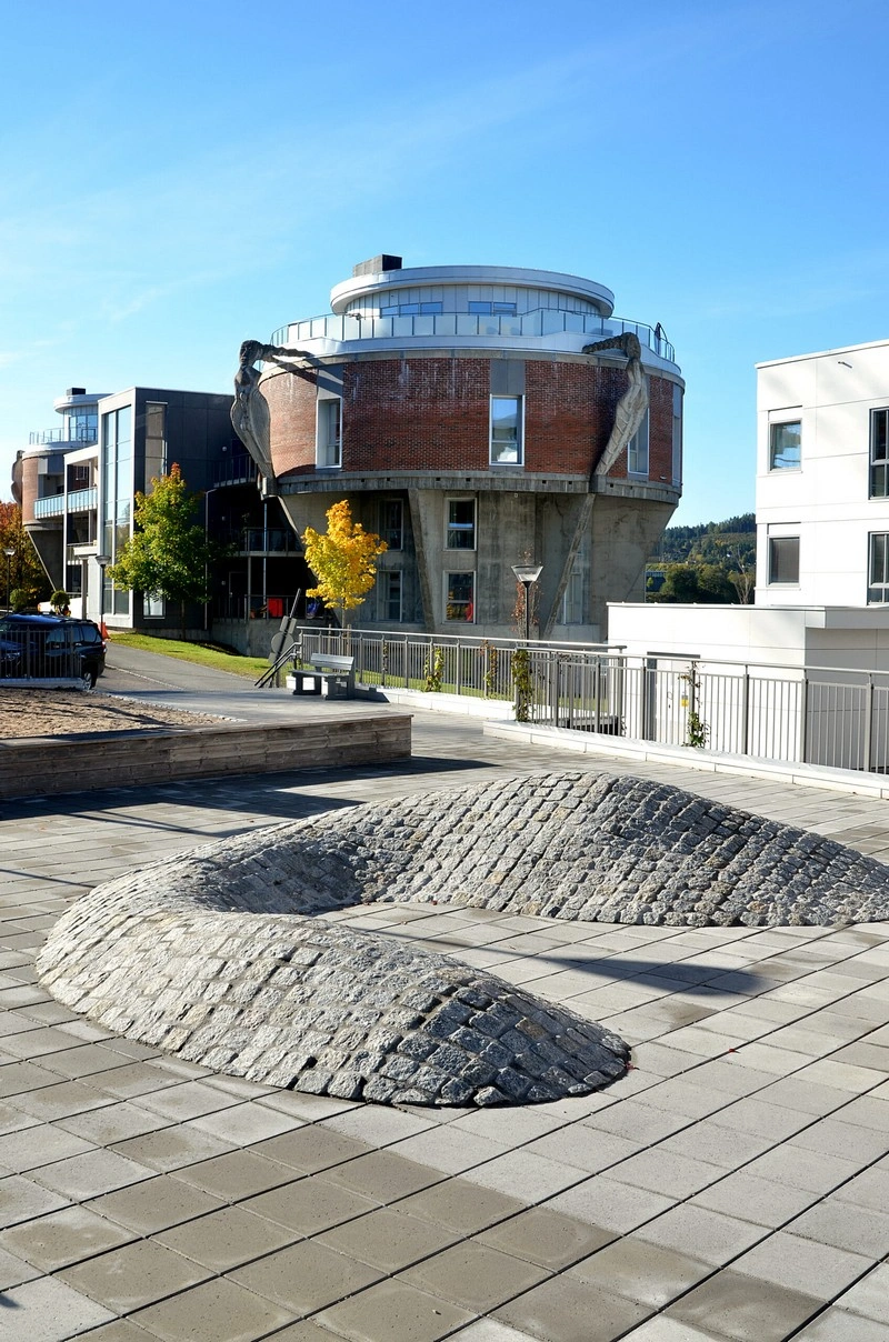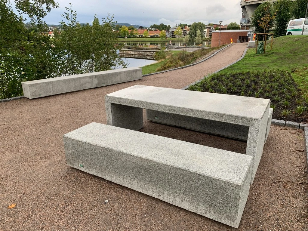 Her finner man et flott torg med pergola og vakre, opphøyde staudebed. Mange passerer dette stedet i Skien når de går tur langs Hjellevannet. Vi har samarbeidet tett med HRL på dette byggetrinnet.