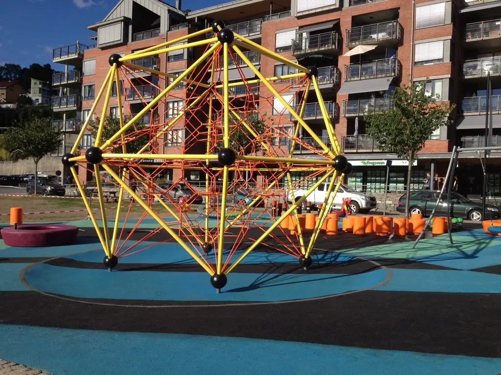 Lekeplassen er fargerik og kjent for det store klatreapparatet, der mange barn samles. Noen av de mest populære lekeapparatene her er trampolinene og en Supernova.