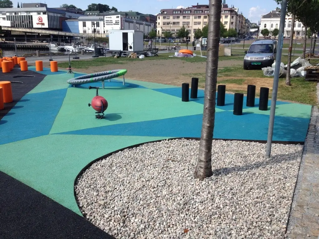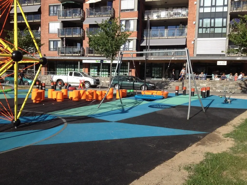 Dette er kanskje den mest kjente lekeplassen i Skien, og vi er stolte over å ha vært med på å bygge den.